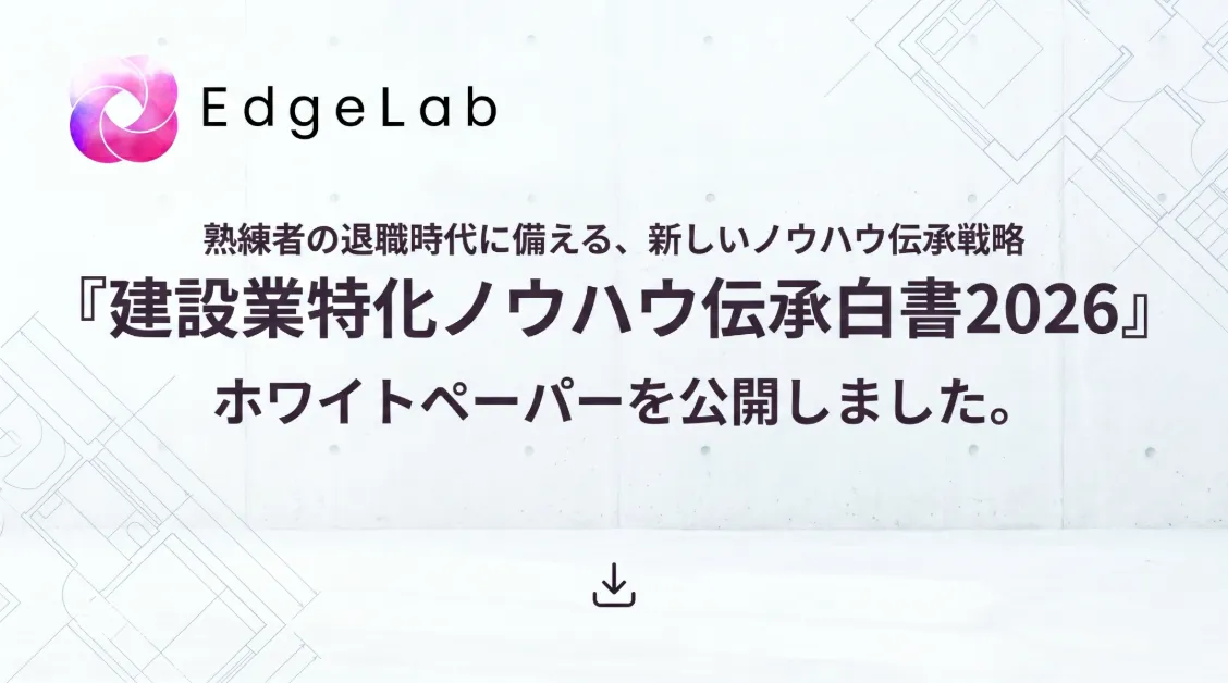 株式会社EdgeLabは、東京大学に由来する新進気鋭のスタートアップで、建設業界に特化したノウハウ伝承システムの開発を手掛けています。最近、同社が公開した『建設業特化ノウハウ伝承白書2026』では、熟練技術者の退職に伴うノウハウ喪失のリスクと、その対策としての生成AIの活用法を詳述しています。