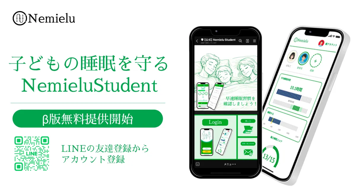 子どもと親が共に取り組む睡眠改善アプリ「NemieluStudent」がβ版をリリース