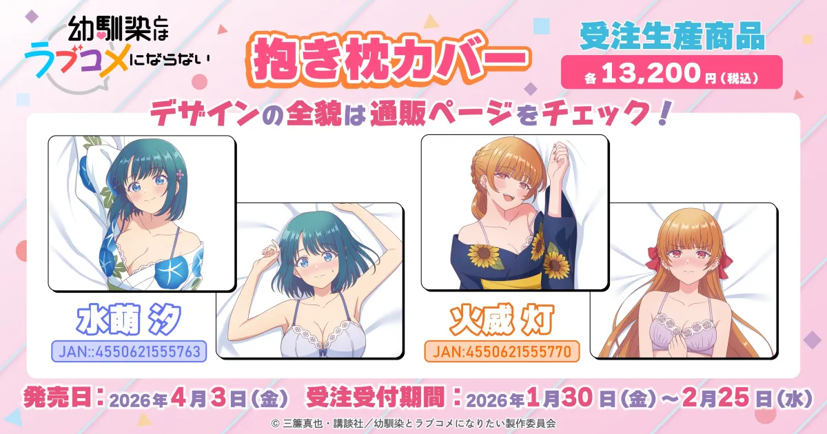 テレビアニメ『幼馴染とはラブコメにならない』の大人気キャラクターたちをモチーフにした新商品、抱き枕カバーの受注が開始されました。このシリーズは、主人公の界世之介が織り成すじれったい幼馴染とのラブコメを描いており、まさにファン待望の一品です。