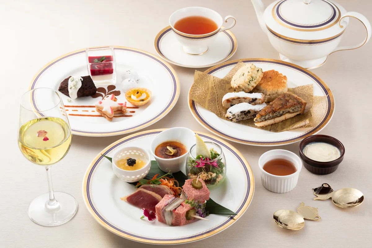 特別メニューには、泉州の「黄玉ねぎ」を使った『泉州黄玉ねぎのムースと泉南フルーツトマトのジュレ キャビアを添えて』や、「泉南フルーツトマト」を使用したジャムバターサンドが登場。これに加え、北ドイツの定番デザート『ローテ・グリュッツェ』や、スコーン、ペストリーなど、様々なセイボリーとスイーツが組み合わさった豪華なティータイムが待っています。