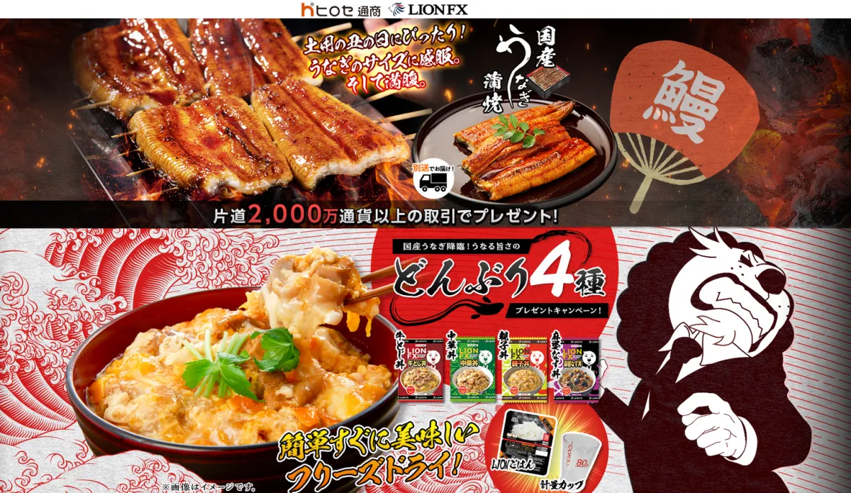 このキャンペーンは、ヒロセ通商の提供するFXサービス「LION FX」を利用して、一定の取引量を達成した方を対象に、豪華な国産うなぎや、オリジナルのどんぶりメニューをプレゼントするというものです。キャンペーンは2025年6月2日午前9時から始まり、7月1日午前8時59分までの期間限定です。