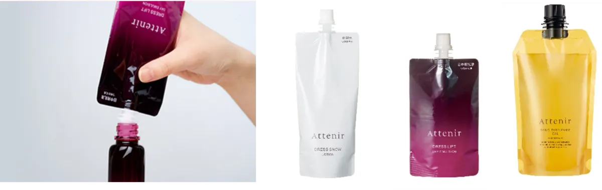 アテニアでは今後も、プラスチック使用量を削減しながらも「使いやすさ」と「美しさ」を追求した商品を展開していく計画です。例えば、簡単に使い切ることができる真空構造のレフィルを採用したり、商品ごとに最適な素材を選定するなど、持続可能性の観点からも柔軟に対応しています。実際に、エコパックを使用することで、製品のプラスチック量を大幅に削減することに成功しています。