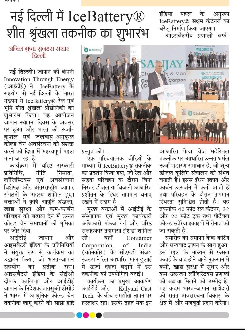 発表会では、CONCORの会長Sanjay Swarup氏も登壇し、この技術の日本での実績を強調する一方で、インドの環境に適応した高性能の期待を寄せました。また、ITEの代表取締役Pankaj Garg氏は、農産物のロスや電力需要に対する解決策として、この新技術が必要であるとの考えを示しました。ICEBATTERY上級顧問でもある日本の物流業界の著名な人物、石田忠正氏はこの新技術が国際的な持続可能物流の基準を確立する可能性を秘めていると語り、今後の展開に大きな期待を寄せています。