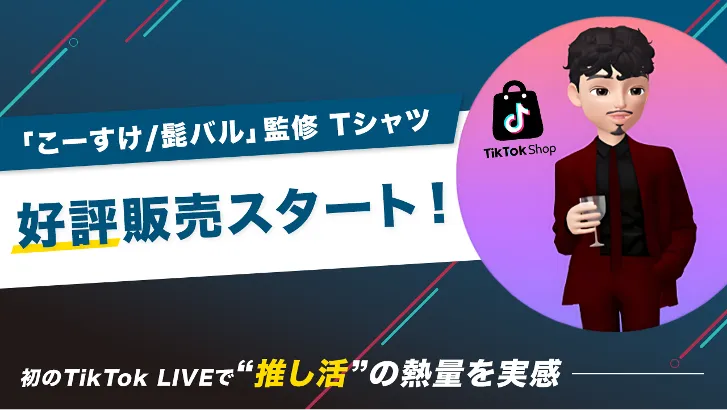 7月26日、フィードフォースグループとBOY NEXT DOORがお送りした初のTikTok Liveが実現しました。この特別なオンラインイベントでは、料理・晩酌系インフルエンサー「こーすけ / 髭バル」が登場し、彼の専用にデザインされたオリジナルTシャツを発売しました。チャンネルに集まった約1,100人の視聴者たちは、目の前で繰り広げられる「推し活」の熱い空気感を体感しました。