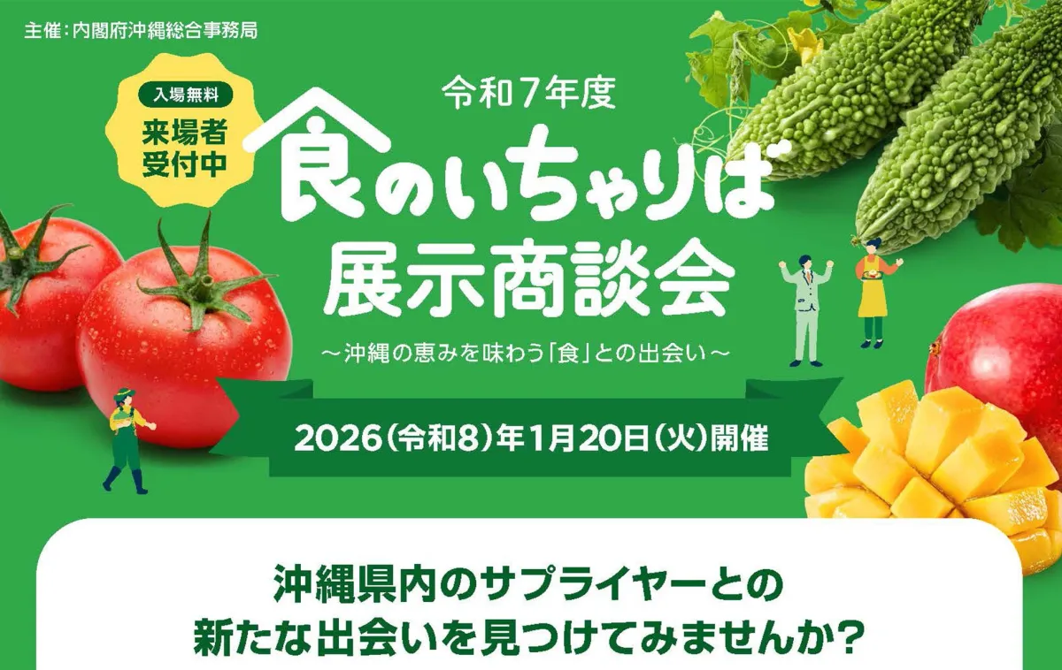 2026年1月20日、沖縄県宜野湾市の沖縄コンベンションセンターにて「令和7年度 食のいちゃりば展示商談会」が開催される。このイベントでは、沖縄県産の農林水産物やその加工品に焦点を当て、地域特産品の認知向上と需要拡大を目指す。