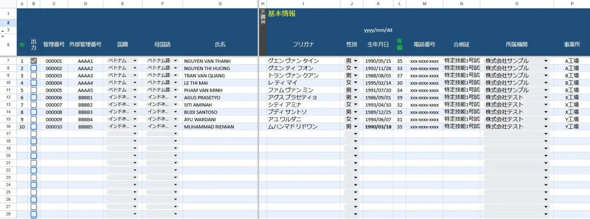 直感的な一覧管理: スプレッドシート形式でのデータ管理が可能で、既存のExcelなどからのデータ移行もスムーズ。これにより、入力作業が大幅に短縮されます。
