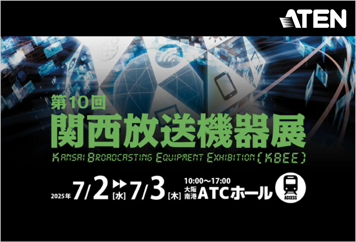 ATENジャパン株式会社は、2025年7月2日(水)および3日(木)に大阪南港ATCホールで開催される「第10回 関西放送機器展」に出展します。このイベントは、放送・映像制作に関する最新技術が集う場であり、ATENは「最新映像&KVMシステムで、次世代の表現力を。」をテーマにして、新たな映像技術や遠隔制御ソリューションを紹介します。