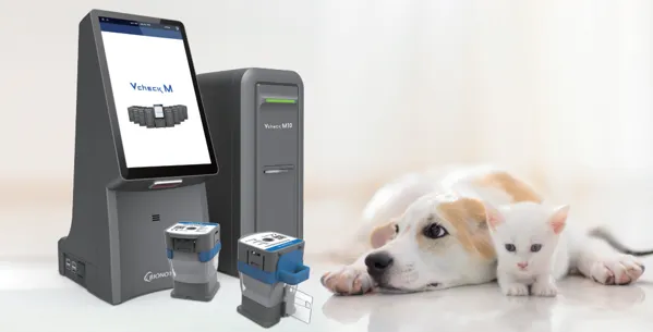 「VチェックM10」の最大の特徴は、最短1時間でリアルタイムPCR検査が可能であることです。4つの簡単なステップで操作でき、使用するカートリッジによっては60分から80分で結果が出力されます。これにより、動物の健康状態を素早く把握でき、迅速な対応が可能になります。また、コンパクトな本体設計になっているため、院内のスペースを取らず、使い勝手が良いのもポイントです。