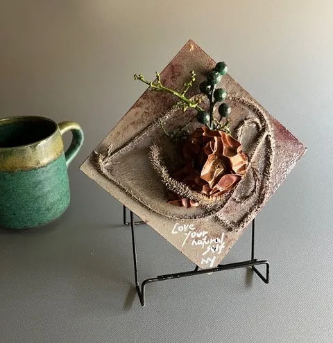 この作品を製作しているアーティストは、4年前に散歩中に見かけた木の枝に強いインスピレーションを受けたことを語ります。「普段気にも留めないものが、ある瞬間に強く心を掴む。老いを感じる中で、自分自身も自然の一部であることに思いを新たにし、アートとして表現することに決めました。」と、そのきっかけや想いを打ち明けます。