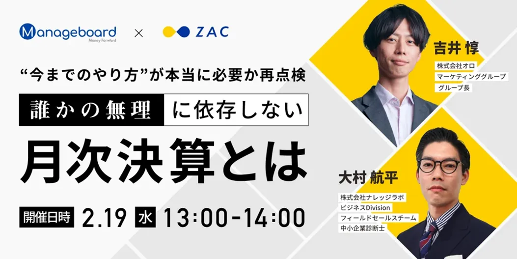 セミナーでは、ナレッジラボの中小企業診断士、大村航平氏が経理業務の効率化に関する解説を行います。また、オロの吉井惇氏も登壇し、クラウドERP『ZAC』の導入効果について語ります。両者の豊富な実績や知見が、参加者にとって大きな価値となることでしょう。