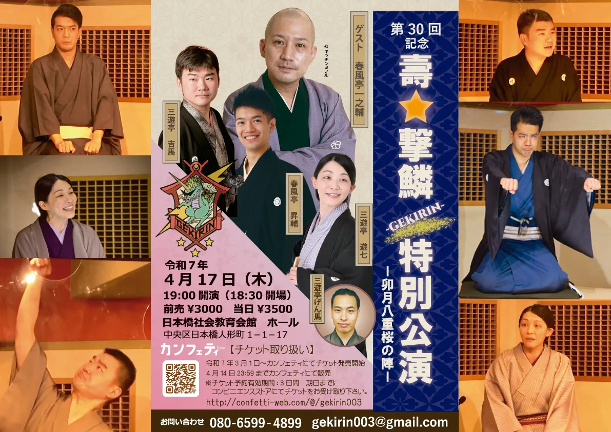 2025年4月17日(木)、東京都中央区の日本橋社会教育会館で、落語界の若手ユニット「壽☆撃鱗 -GEKIRIN-」が記念すべき30回目の特別公演を開催します。今回の舞台には著名な落語家、春風亭一之輔がゲストとして登場し、観客を楽しませる予定です。この特別公演では、普段の公演の約10倍の広さを持つ会場で、多彩な演目に挑むという新たな試みにも期待が寄せられています。