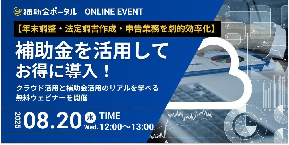 2025年8月20日、水曜日の午後12時から1時間にわたり、株式会社補助金ポータルと共催の無料オンラインセミナー、「年末調整・法定調書作成・申告業務を劇的効率化!補助金を活用してお得に導入!」が開催されます。皆様のご参加をお待ちしています。