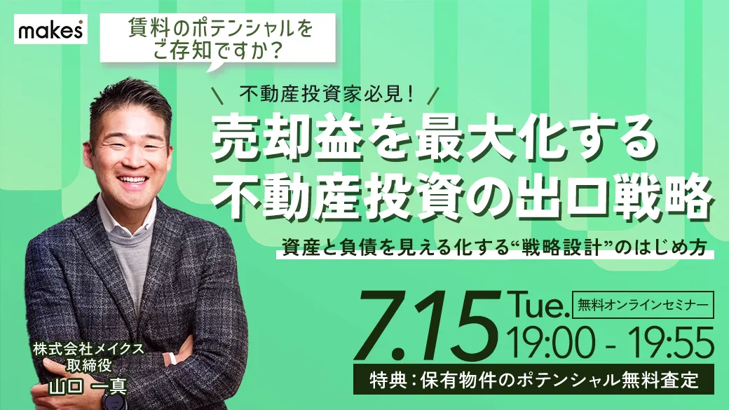 不動産投資を行っている方々にとって、「持ち続けていれば安心」との考え方が根強く存在します。しかし、実際には購入した物件の出口戦略をしっかり設計することが、資産形成のカギとなります。この度、資産と負債を見える化する「戦略設計」の重要性を学べるセミナーを開催します。このセミナーでは、経験豊富な不動産投資コンサルタントが、売却時のタイミングや方法について詳しく解説します。
