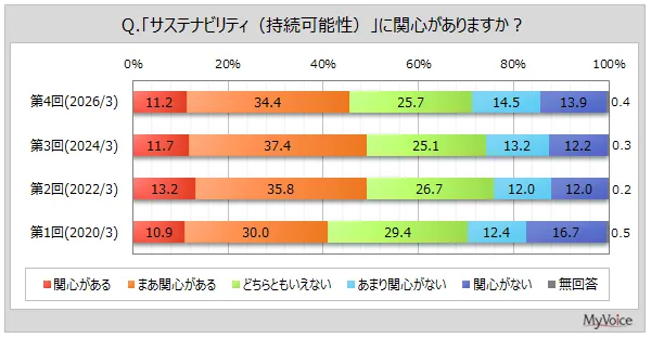 最近、持続可能な開発に関する意識が世界的に高まっています。マイボイスコム株式会社が実施した最新の調査によると、サステナビリティから派生する様々なトピックに対する関心度が確認されました。この調査は2026年3月1日から7日まで行われ、11,120名の回答を基にしています。