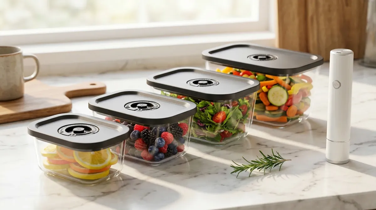 「STOQ Slim Pump」を活用し、ボタンを押すだけで約10秒で真空状態を作り出します。酸素を取り除くことで、食材の鮮度を長引かせることが可能です。この機能により、作りたての美味しさをしっかりと封じ込めることができます。