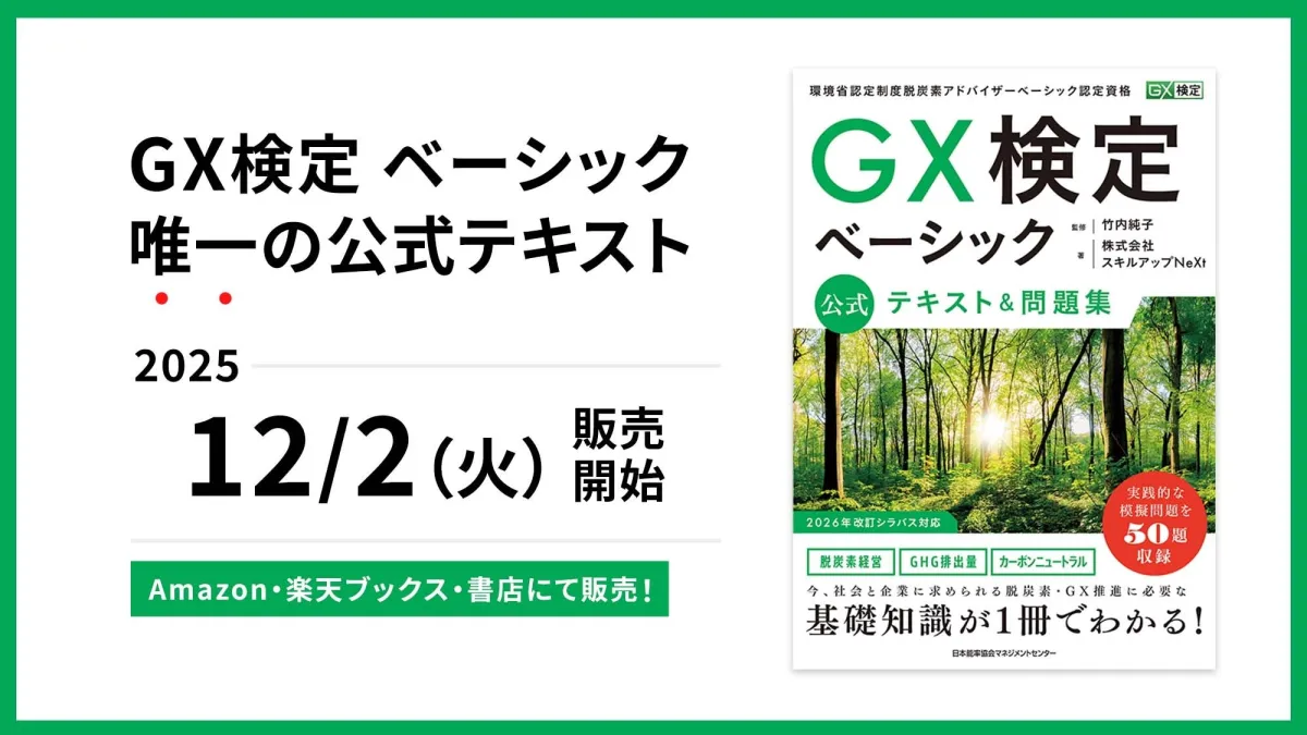 株式会社スキルアップNeXtは、2025年12月2日に『GX検定ベーシック 公式テキスト&問題集』をリリースすることを発表しました。この書籍は、日本で初めて環境省に認定された資格試験「GX検定ベーシック」の唯一の公式教材として、環境・エネルギーの専門家である竹内純子氏の監修のもと開発されました。