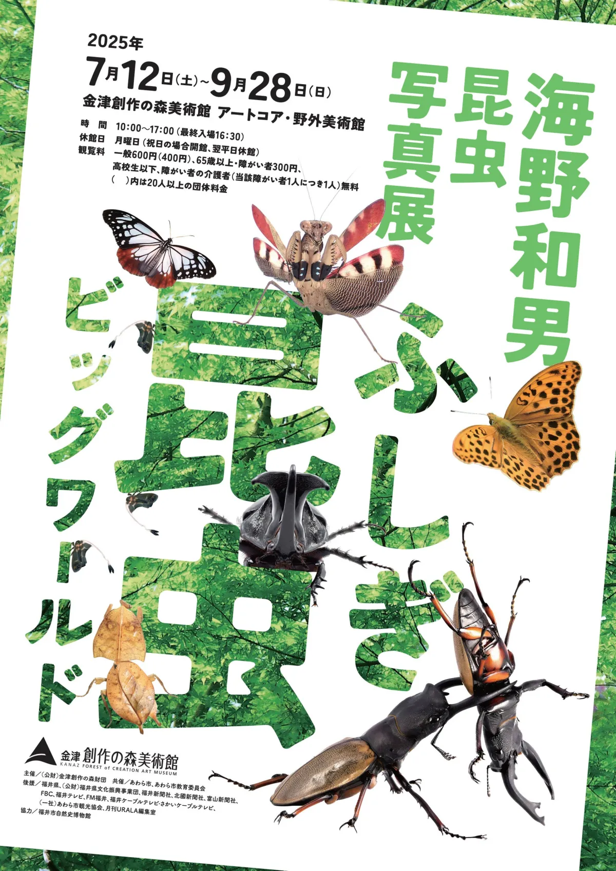 福井県あわら市の金津創作の森で、世界的な昆虫写真家である海野和男氏の特別展「海野和男 昆虫写真展 ふしぎ昆虫ビッグワールド」が、2025年7月12日から9月28日まで開催されます。これは海野氏にとって、金津創作の森での初めての個展です。