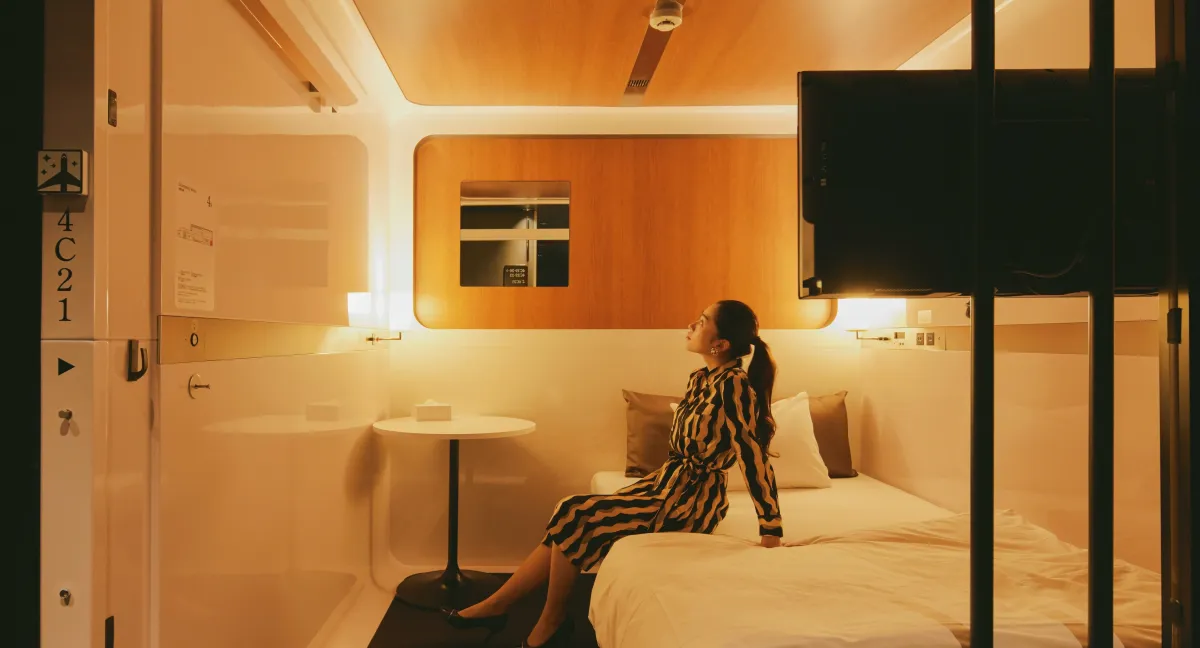 ファーストキャビンは、飛行機のファーストクラスをイメージしたブティックホテルです。スタイリッシュなデザインと快適なキャビンが特徴で、観光やビジネス利用者に高品質な宿泊体験とリーズナブルな価格を提供します。