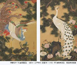 展覧会では、愛する人への想いや穏やかな日常を描いた絵画が披露される。特に注目すべきは、83年ぶりに再発見された伊藤若冲の名作「孔雀鳳凰図」であり、この貴重な作品を直接鑑賞できる機会となる。他にも、平和や享楽をテーマにした名所的な風俗画や、様々な生き物を描いた作品が並び、日本の自然や日常の美が感じられる。