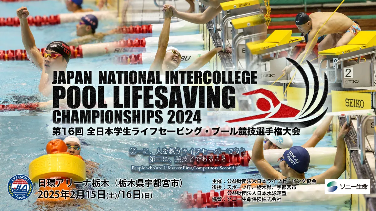 2025年2月15日(土)から16日(日)の二日間にわたり、日環アリーナ栃木(宇都宮市)で「第16回全日本学生ライフセービング・プール競技選手権大会」が開催されます。この大会は、公益財団法人日本ライフセービング協会(JLA)が主催し、全国から43チーム、529名の選手が集まる大規模なイベントです。