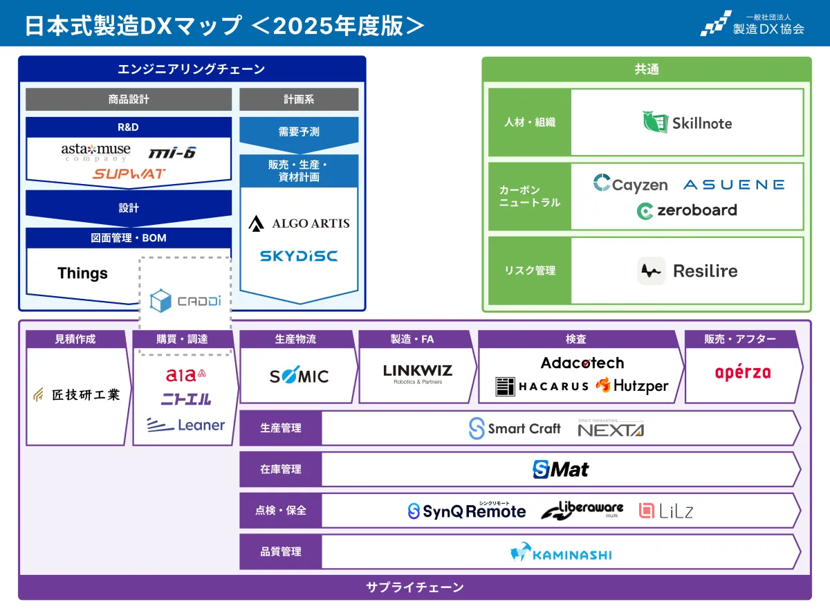 2025年3月27日、一般社団法人製造DX協会が製造業のデジタル・トランスフォーメーションを進める日本のスタートアップを整理した「製造DXスタートアップ カオスマップ」を公開しました。このカオスマップには、株式会社Smart Craftが「生産管理」領域のスタートアップとして名を連ねています。
