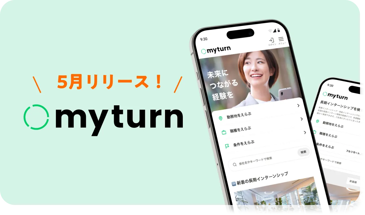 『myturn』は大学生が求める長期で実践的なインターンシップの情報を提供し、興味や働き方に応じた詳細な検索機能を備えています。加えて、将来的にはキャリアサポートによるマッチング機能も実装予定であり、学生が自分に合ったインターン先と出会えることを目的としています。