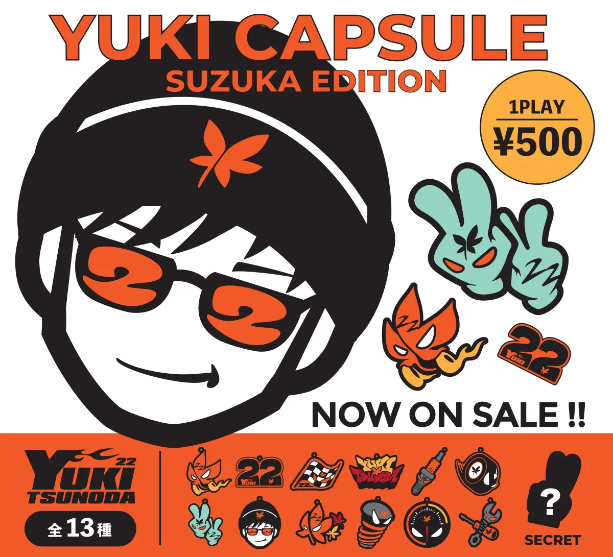 今回販売される『YUKI CAPSULE SUZUKA EDITION』は、角田選手のマネジメントを務めるAeon Managementとの協力によって実現しました。このカプセルトイは、全13種のラバーチャームがラインアップされており、うち1種類はシークレットとなっています。