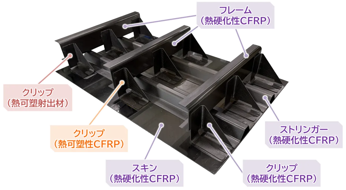 このような課題に対処するため、東レ株式会社は新たな高速接合技術を開発しました。この技術は、熱硬化性CFRPと熱可塑性CFRPを用いた新規の熱溶着接合技術です。従来の接着剤接合と比較して、圧倒的な接合強度を実現し、接合時間を従来の1/3以下に短縮しました。これにより、ボルトファスナーを減少させることで、全体の機体重量を軽減することが可能となります。