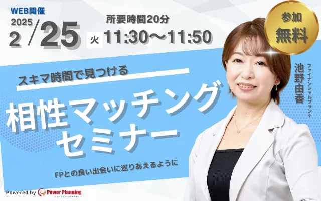 2月19日(水)に、パワープランニング株式会社が主催する「相性マッチングセミナー」が開催されます。この無料のマネーセミナーは、スキマ時間で自分にピッタリのファイナンシャルプランナー(FP)を見つけることができる内容になっています。講師には経験豊富な池野由香FPが参加し、参加者どなたでも気軽に相談できる環境を提供します。
