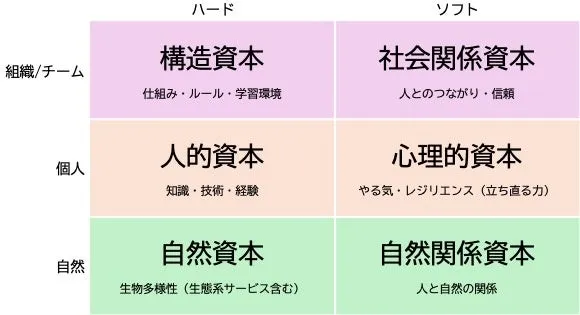 このフレームワークは、以下の6つの資本に基づいて構成されています: