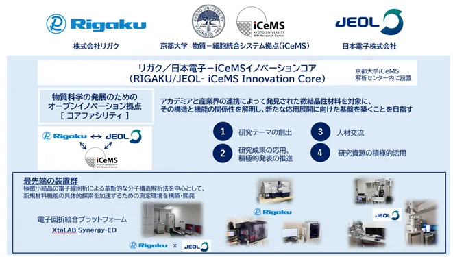 - - 組織概要: リガク/日本電子-iCeMSイノベーションコアは、京都大学のiCeMS解析センターに設置されます。