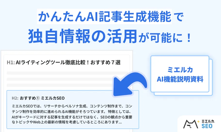 株式会社Faber Companyは、SEOプラットフォーム「ミエルカSEO」において、利用者が自身の持つ資料をアップロードし、その内容を反映させて記事を生成できる新機能を発表しました。この新機能は、ユーザーが独自に収集した調査結果や専門知識を活かすことを可能にします。
