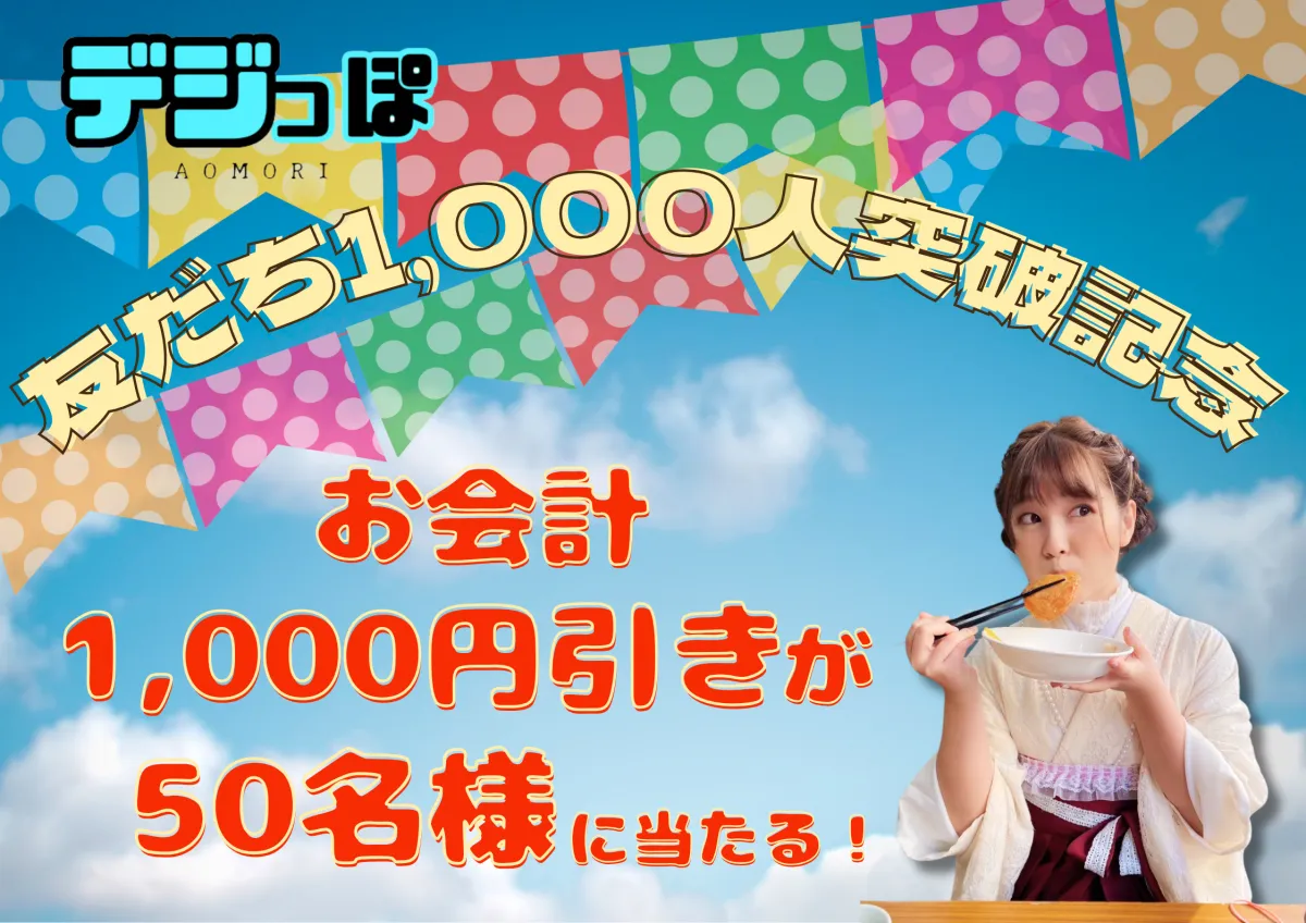 『デジっぽAOMORI』は、青森市、弘前市、八戸市を中心に展開されている飲食店向けのデジタルクーポンサービスです。利用者はLINE公式アカウントを通じて、加盟飲食店で使えるクーポンを取得できます。1,000人突破を祝して、6月は特にお得な抽選クーポンが用意されています。