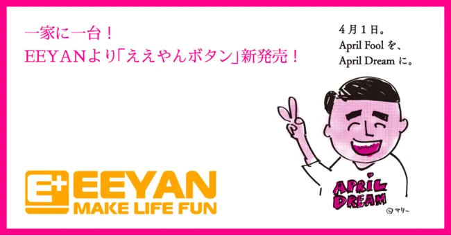 EEYANは、「ワクワク」や「ドキドキ」をもたらし、つい「ええやん!」と口にしたくなるようなおもしろい商品を開発しています。日本国内だけでなく、世界中に楽しいアイテムを広めることで、世の中がもっと楽しみで満たされることを目指しています。また、「April Dream」というプロジェクトにも参加し、4月1日に企業が叶えたい夢を発信し、多くの人々に笑顔を届ける活動も行っています。