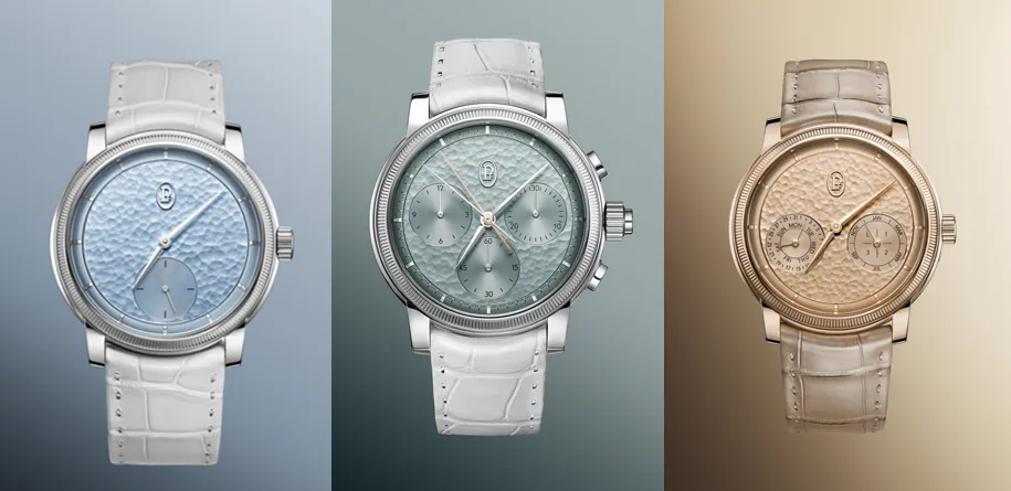 続いて「トリック」コレクションからは、創業時のビジョンを反映した新しい装飾技術が採用されています。ハンマード・ダイヤルや、ローズゴールド製のムーブメントには、クラフトマンシップの証であるクル・ド・パリが手作業で施されています。これらのディテールは、パルミジャーニ・フルリエの哲学を伝えており、創業時から続く伝統と高い職人技へのこだわりが表れています。