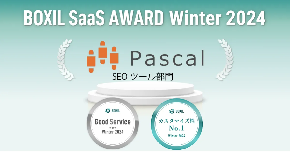 SEO業界で注目を集めている株式会社オロパスが提供するSEOツール「パスカル」は、スマートキャンプ株式会社主催の「BOXIL SaaS AWARD Winter 2024」において、特に優れたサービスとして「Good Service」と「カスタマイズ性No.1」の2つの受賞を果たしました。このアワードは、2023年10月1日から2024年9月30日までの期間に、BOXIL SaaSに投稿された約13,000件の口コミを基に選考されました。