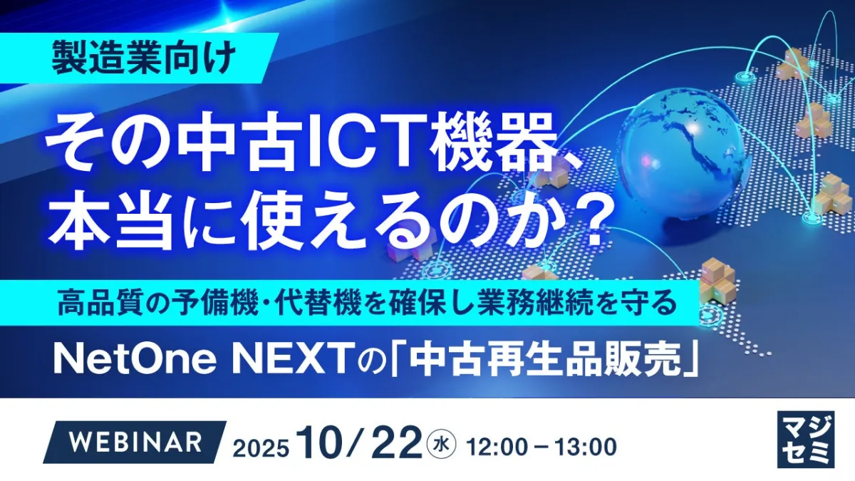 本ウェビナーでは、NetOne NEXTと共催の株式会社オープンソース活用研究所、マジセミ株式会社が協力し、中古ICT機器活用に関する具体的な解決策を提案します。特に、リスクを低減しながら設備更新計画を最適化する手法に焦点を当て、製造業での事例研究も紹介します。