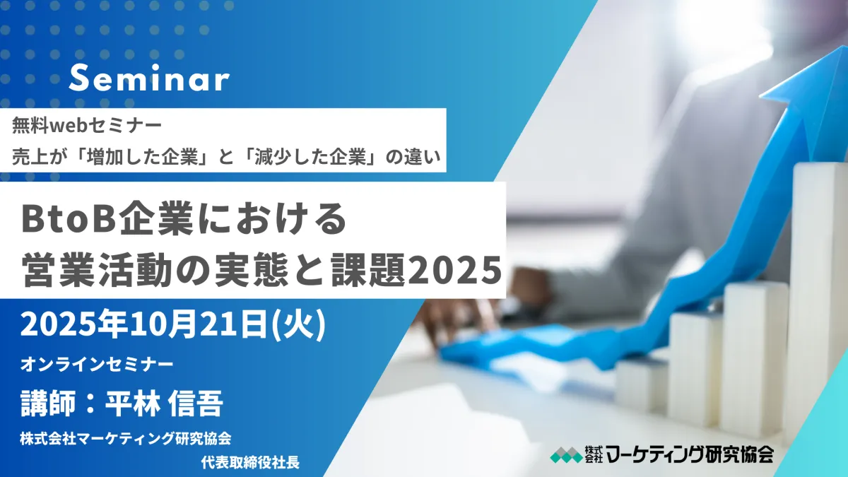 株式会社マーケティング研究協会は、2025年に向けたBtoB企業における営業活動の実態を探るセミナーを10月21日に開催します。参加は無料です。営業力を強化したいと考える企業様は、ぜひご参加ください。
