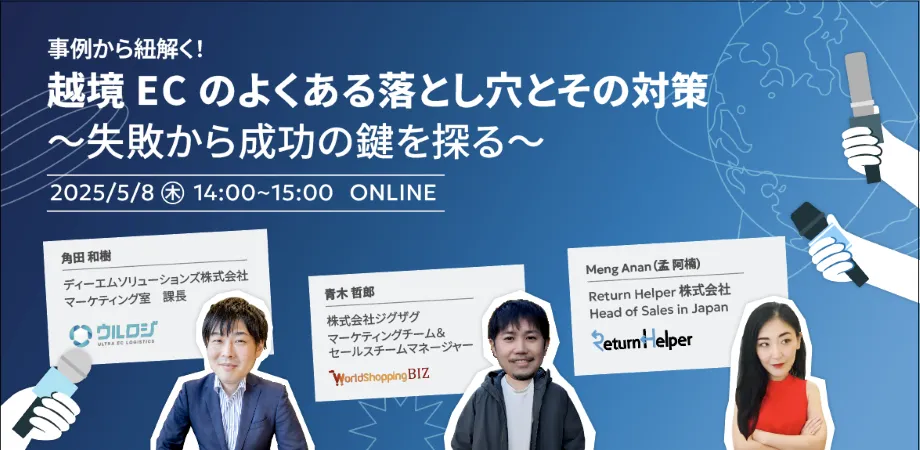 2025年5月8日(木)、株式会社ジグザグが主催する「事例から紐解く!越境ECのよくある落とし穴とその対策~失敗から成功の鍵を探る~」というウェビナーが開催されます。今回は、EC事業者を対象にしたこのオンラインセミナーでは、越境ECを始める際の様々な課題や、それを乗り越えるためのヒントを探ります。