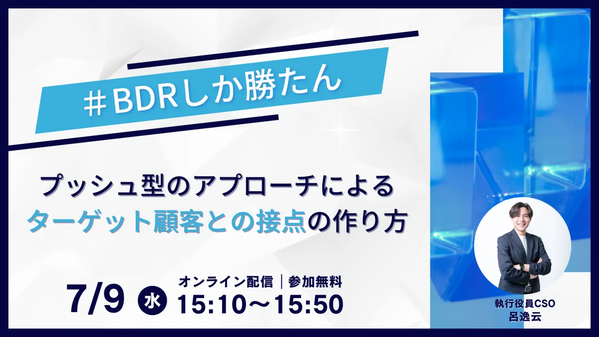 2025年7月9日(水)、株式会社SpaceJackが主催するオンラインセミナー「#BDRしか勝たん 〜プッシュ型のアプローチによるターゲット顧客との接点の作り方〜」が開催されます。このセミナーでは、企業が直面する営業課題に対し、BDR(ビジネス・デベロップメント・リプレゼンテーション)施策を活用した具体的なアプローチ法を学ぶことができます。