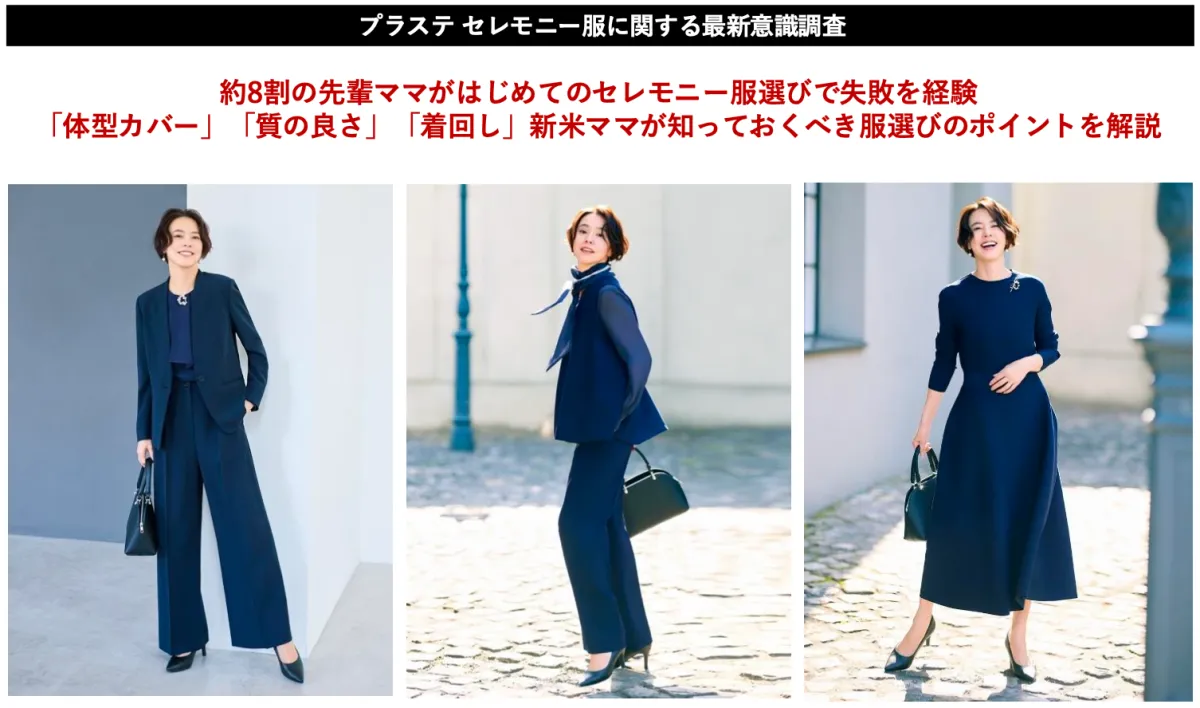 ファーストリテイリングのブランド「PLST」は、先日実施した全国500人の先輩ママを対象とした調査に基づいて、セレモニーシーズンの服選びにおける失敗と成功のポイントを明らかにしました。