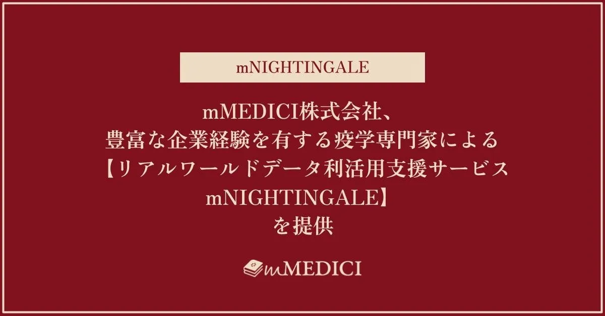 mMEDICI株式会社は、疫学の専門家としての豊富な経験をもとに、企業向けのリアルワールドデータ活用支援サービスmNIGHTINGALEを開始しました。このサービスは、企業が持つデータのポテンシャルを最大限に引き出し、ビジネスに活かすことを目的としています。具体的には、mNIGHTINGALEは、企業が抱える特有の課題に対して、データ分析と基盤を整備することで解決を図ります。