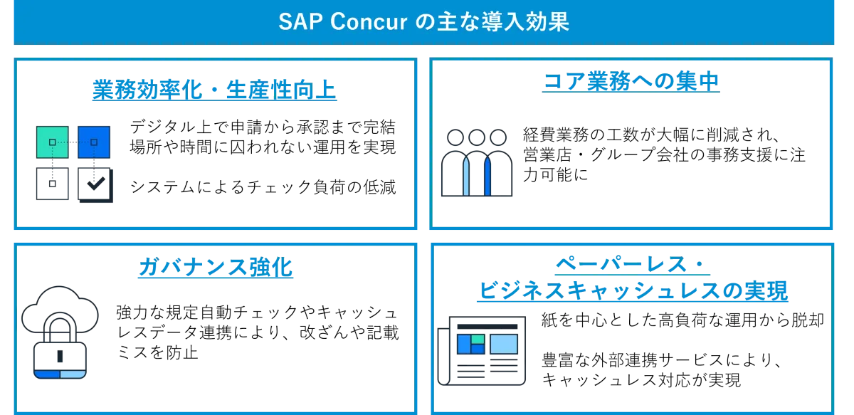 SAP Concurは、出張、経費、請求書管理というビジネスプロセスを一手に担う統合的なソリューションを提供し、そのサポートによって多くの企業が業務の効率化を図っています。特に、リアルタイムデータの統合や分析を通じて、出費の管理が改善される点が高く評価されています。