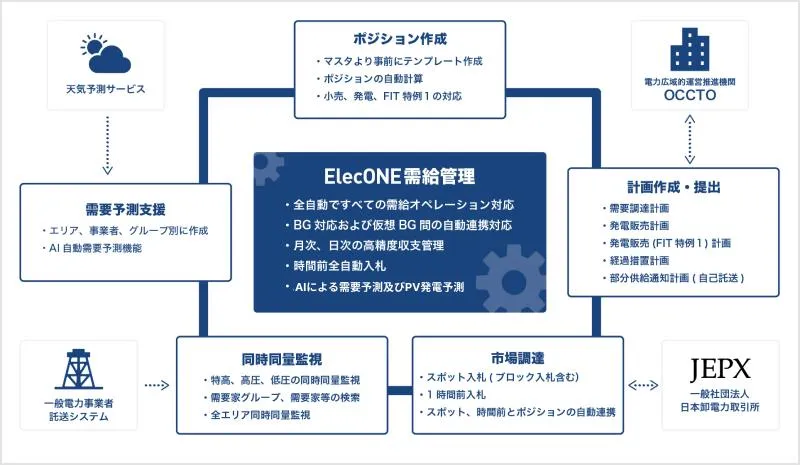 ElecONEは、高度な需給管理システム「ElecONE」を展開し、すでに60社以上の小売電気事業者にそのソリューションを提供しています。これにより、全自動での需給オペレーションが可能です。一方、Shizen Connectは、エネルギーマネジメントシステム「Shizen Connect」を用いて、多様なエネルギーリソースの制御と監視を行っています。この両者の技術を組み合わせることで、より幅広いサービスを提供できることになります。