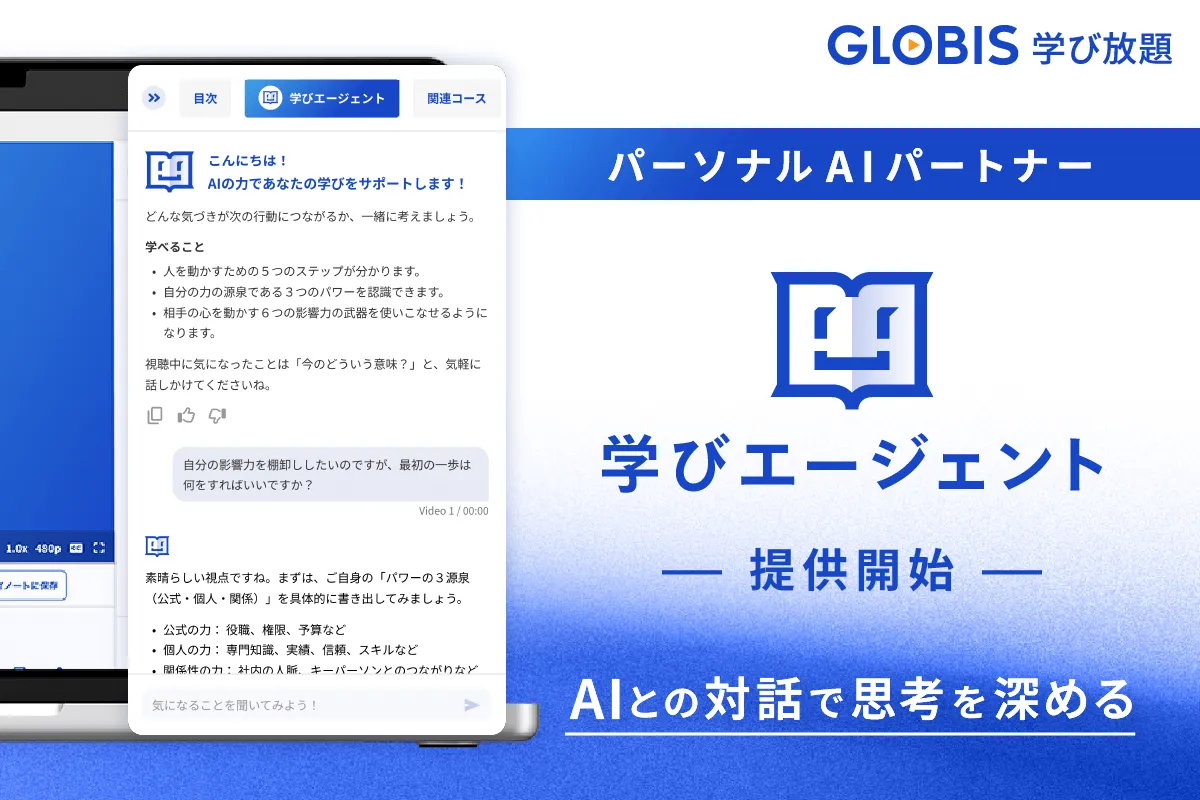 株式会社グロービスが、定額制動画学習サービス「GLOBIS 学び放題」に新たな機能を追加します。それが「学びエージェント」というパーソナルAIパートナーです。この新機能は、2025年11月からリリース予定で、学習者はAIとの対話を通じて、学びを深めたり、疑問を解消したりすることができるようになります。