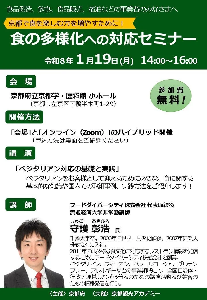 Wiki3: 京都府 京都市 フードダイバーシティ ベジタリアン対応 京都観光アカデミー