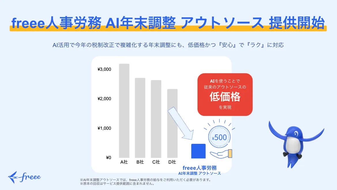 フリー株式会社は、東京都品川区を拠点に、スモールビジネス向けのサポートを強化するため、AIによる年末調整アウトソースサービスを本日より開始しました。このサービスは、非常に煩雑な年末調整業務を効率化し、経済的にも負担を軽減することを目的としています。