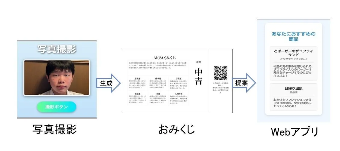 「AIみくじで開運ショッピング」は、店舗に設置されたタブレットを使用して、スマートフォンのカメラで自分の顔を撮影する仕組みを導入しています。AIが年齢層、性別、表情などを分析し、その結果に基づいて、利用者に適した商品やサービスを提供します。このプランは相差町の観光客が増えているものの、1人当たりの消費額が減少しているという課題に対処することを目指しています。