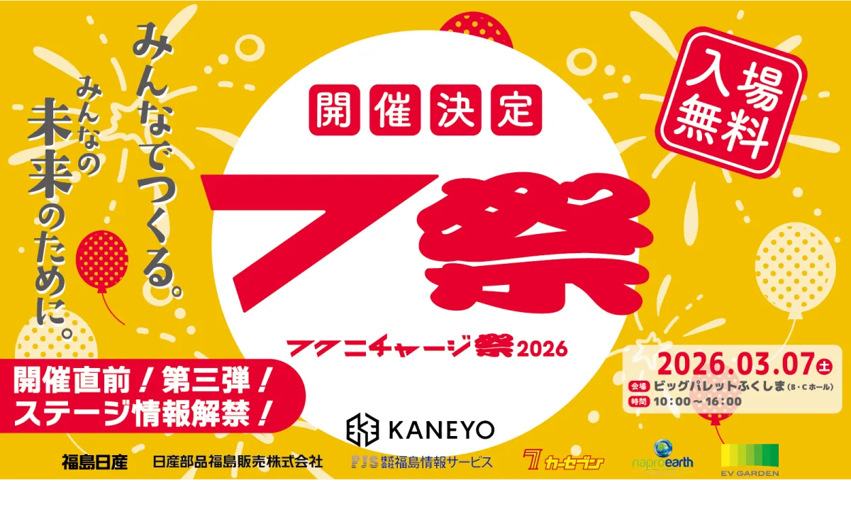 福島日産自動車株式会社は2026年3月7日(土)に開催される「フクニチャージ祭2026」の詳細を発表しました。このイベントは、地域、家族、そして未来をつなぐ体験型の催しで、参加する皆さんに充実した時間を提供します。ここでは、注目のステージコンテンツやフクニチャージマン関連企画、飲食体験について詳しくご紹介します。
